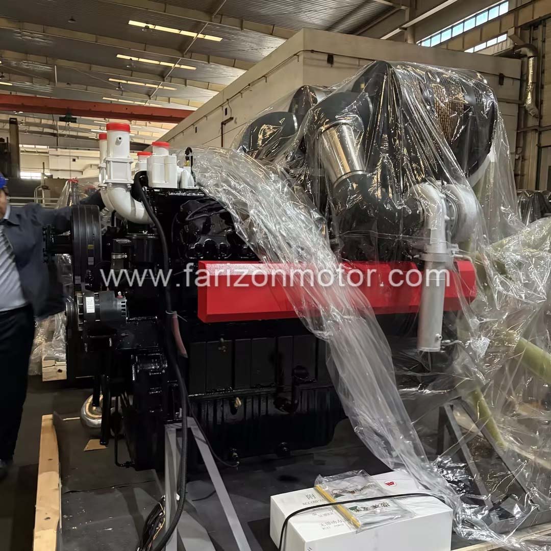 The FARIZON WP1200 diesel engine is a high-power and high-performance power equipment, specially designed for scenarios with strict power requirements such as heavy engineering, large ship propulsion, and large generator sets. With advanced structural design, strong and stable power output, and reliable operating performance, it provides efficient and durable power support for various large equipment, demonstrating FARIZON's core technical strength in the field of diesel power. The engine adopts a four stroke, water-cooled, direct injection combustion chamber design, combined with an electronically controlled high-pressure common rail system. The fuel injection is precise and controllable, greatly optimizing combustion efficiency and balancing strong power with energy conservation and consumption reduction; Equipped with exhaust gas turbocharging and air-to-air cooling system, effectively improving intake efficiency, accurately controlling engine operating temperature, and ensuring continuous and stable operation under high load conditions; Adopting a V-shaped 12 cylinder layout, with a displacement of up to 35.9L and a rated power of up to 1238kw, the speed is stable at 1500r/min. The power output is strong and stable, which can easily cope with high-intensity and long-term continuous operation needs. At the same time, it is equipped with a 24V electric starting system, which can start quickly and conveniently, and adapt to the starting needs of various complex work scenarios. The overall structural design is scientific and compact, balancing excellent performance and convenient installation, and suitable for high-power power needs in multiple fields.