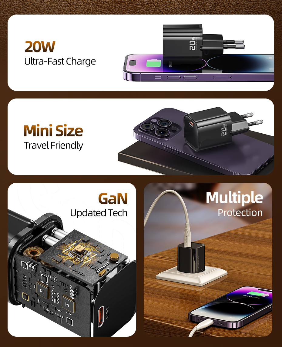 Fast Charging Power Adapter 20W PD GaN Charger - EU/UK/US/KR Compatible1