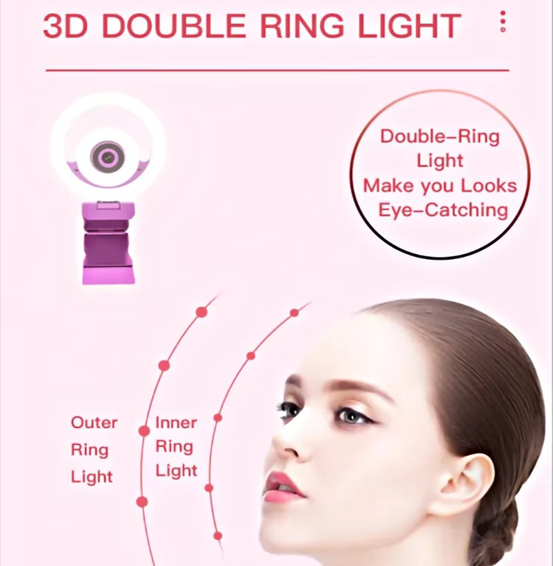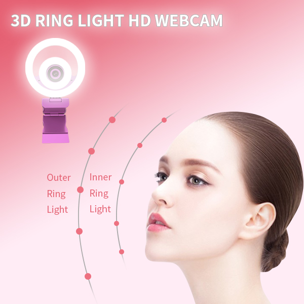 ·3D RING LIGHT QHD WEBCAM ·3 Color Light Mode? ·10 Level Brightnes? ·The Webcam Screen Light? ·Make you See Clear& Beauty Even in Dim Light? ·1944P QHD Sony Sensor? ·Auto Focus ·High-Fidelity Dual digital microphone ·Superior low-light performance ·Clear&Beauty ·Plug-and-Play Video? ·Dimensions 22X100X67mm | Resolution | 2592x1944, |