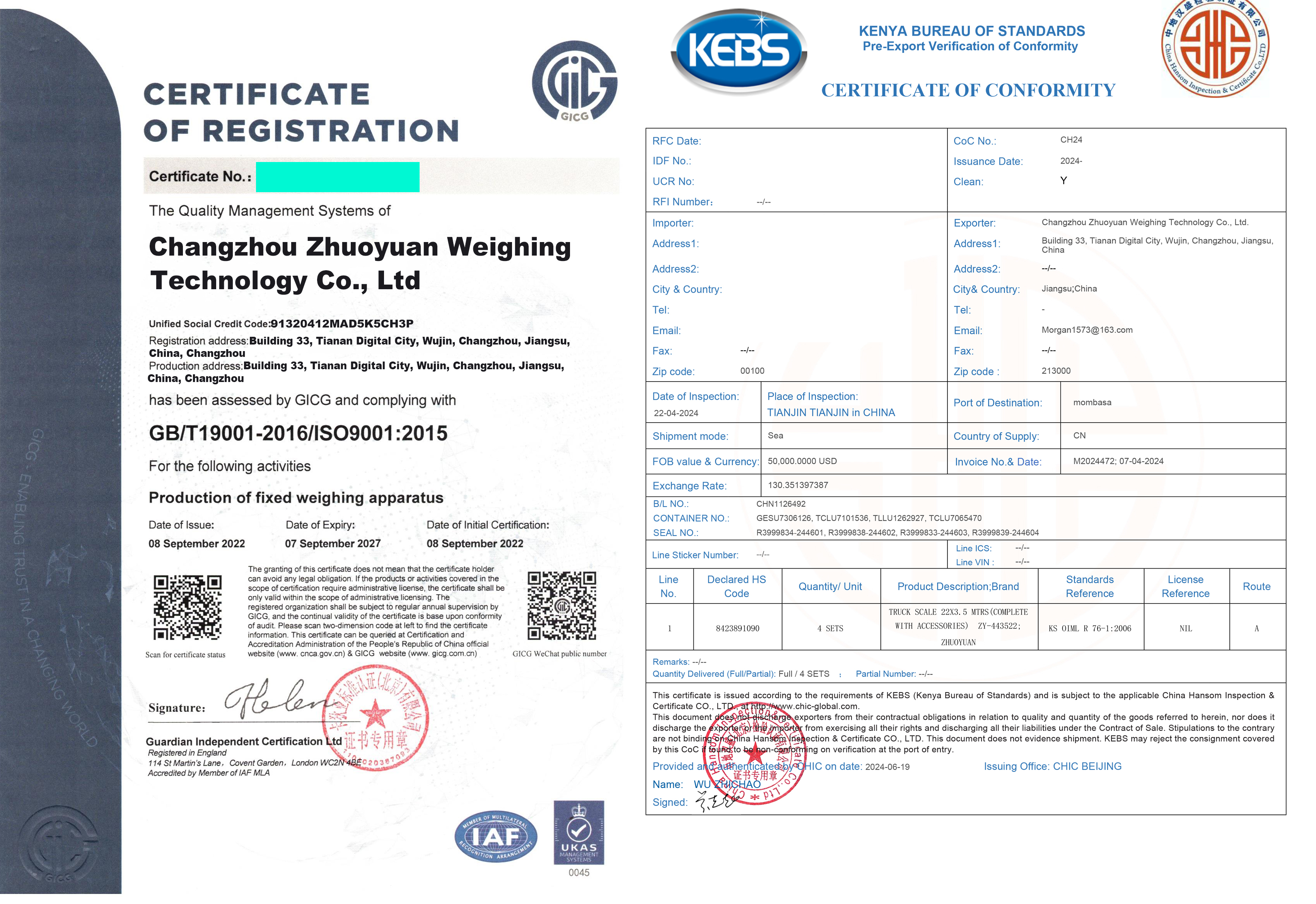 Quality system and certificate | ISO9001, ISO14001, OHSAS18001,CE |