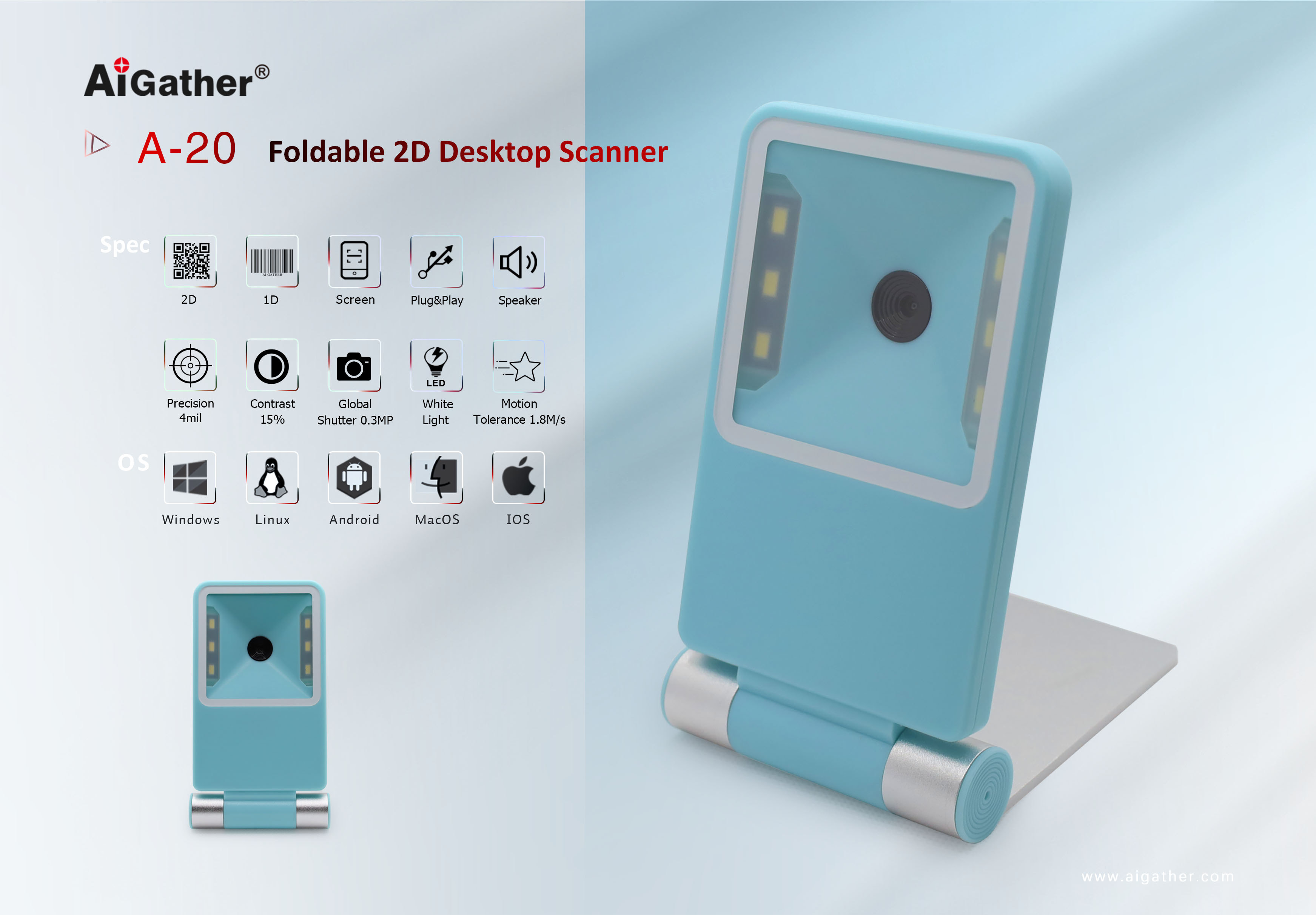Image 2D Desktop Scanner: AiGather Barcode Scanner can easily capture bar codes 1D/2D on labels, paper, and mobile phone or computer displays,sensitive and accurately, no need to switch.