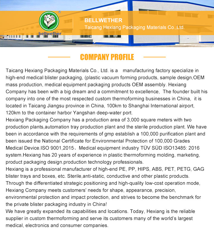 For thermoform medical device packaging,electronics packaging and consumer packaging, Taicang Hexiang Packaging Materials offer precision packaging. Product manufacturers rely on our profession to provide innovative, reliable and cost-effective packaging solutions.