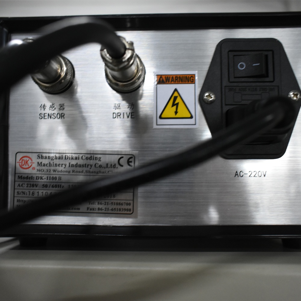 DK-1100B Ink roll coder machine is a newly date code pinter with novel structure. It can be equipped with all kinds of flow packing machine and continuously vertical packing machine for tracing and printing production date, lot number, expire date, etc. automatically. Compact in structure, convenient in assembling and using, fast in printing with large printing cover, flexible in formatting types, and much shorter in the minimum printing distance, it has widely used in food and drug industries.