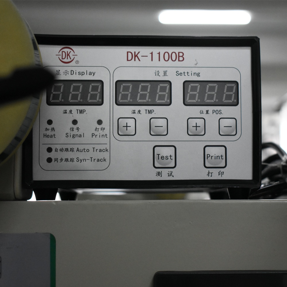 ?DK-1100 ink roll coding machine is working with continuous packing machine to print date code, lot number, etc. on plastic bags. It is widely used in food, pharmacy, and other industries.