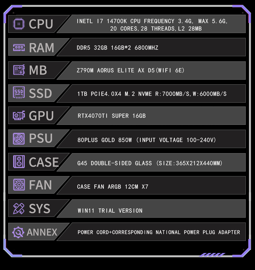 G45 Desktop Computer Core i7 14700K 32G 1000GB SSD RTX4070 Ti Super 16GB Win11 Gaming PC1