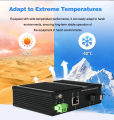 The SD1F1T-SFP/SD1F1T-SFP-POE family model products are designed with a focus on industrial standards, including materials and product design. The enclosure is crafted from aluminum alloy, ensuring superior heat dissipation for efficient performance. The fanless heat dissipation circuit design allows for a wide range of working temperatures, while also providing a high level of protection. These technologies contribute to the exceptional industrial-grade quality of the products, making them resistant to both high and low temperatures and offering protection against lightning and other potential hazards. Additionally, the products feature industrial-grade three-level ESD protection, making them suitable for various applications, such as intelligent transportation, outdoor monitoring, industrial networks, and deployments in smart cities and other challenging environments. Network Switches