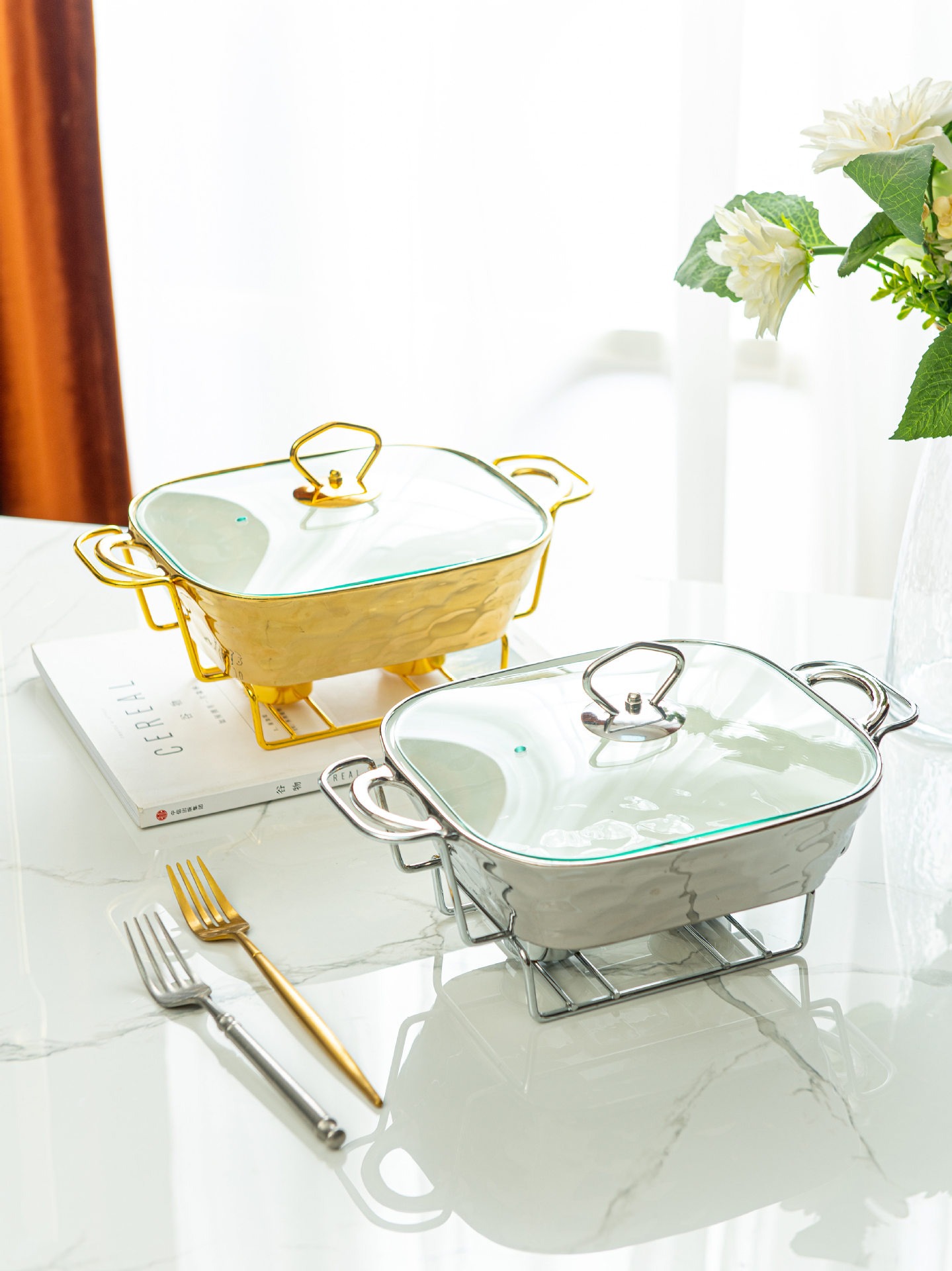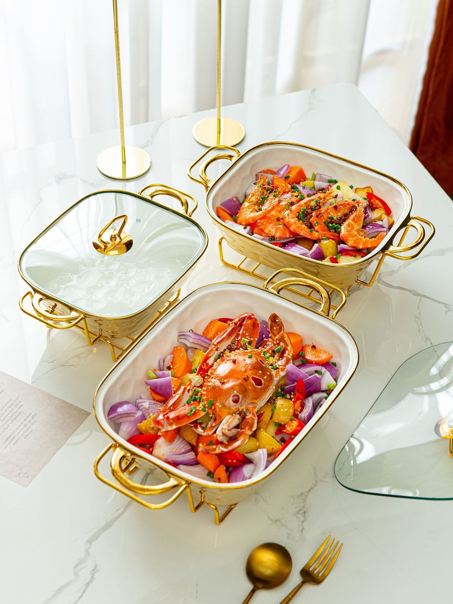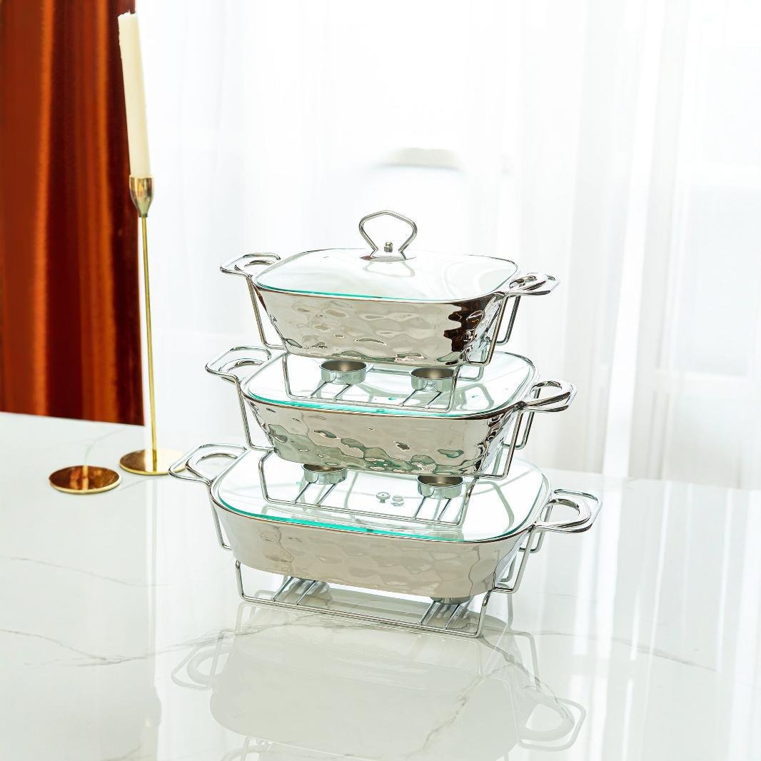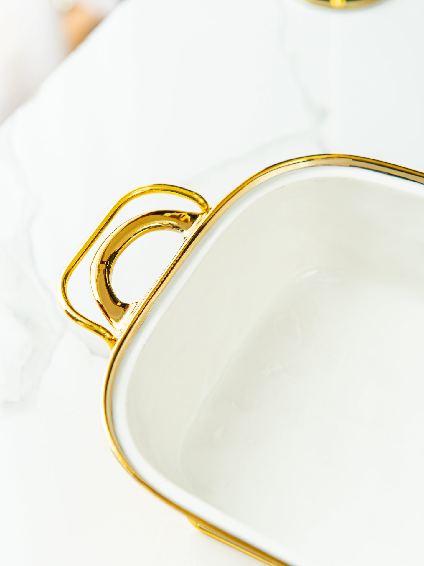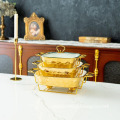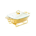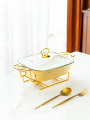 Gold Stone Texture Rectangular Ceramic Baking Dish with Glass Lid1