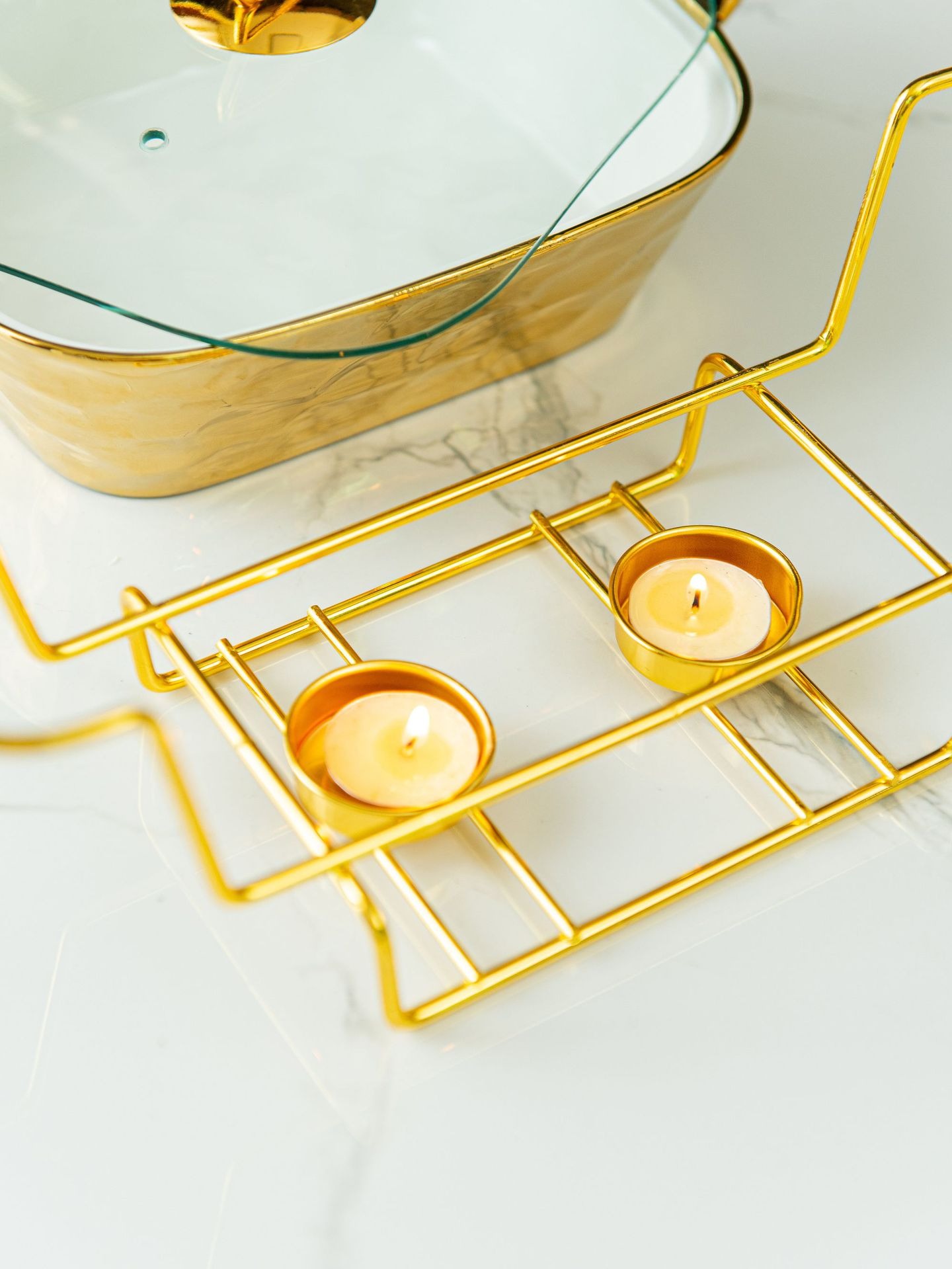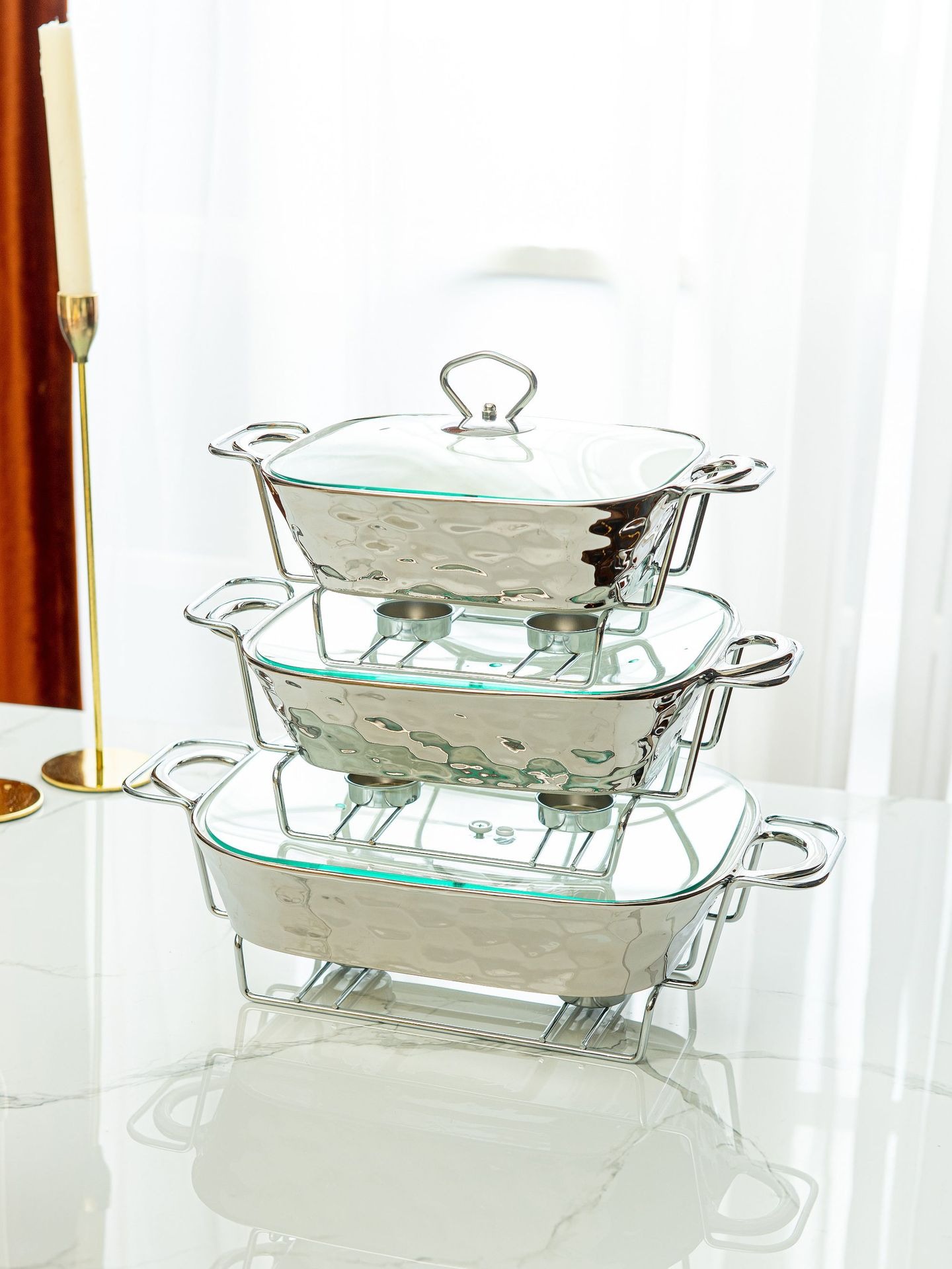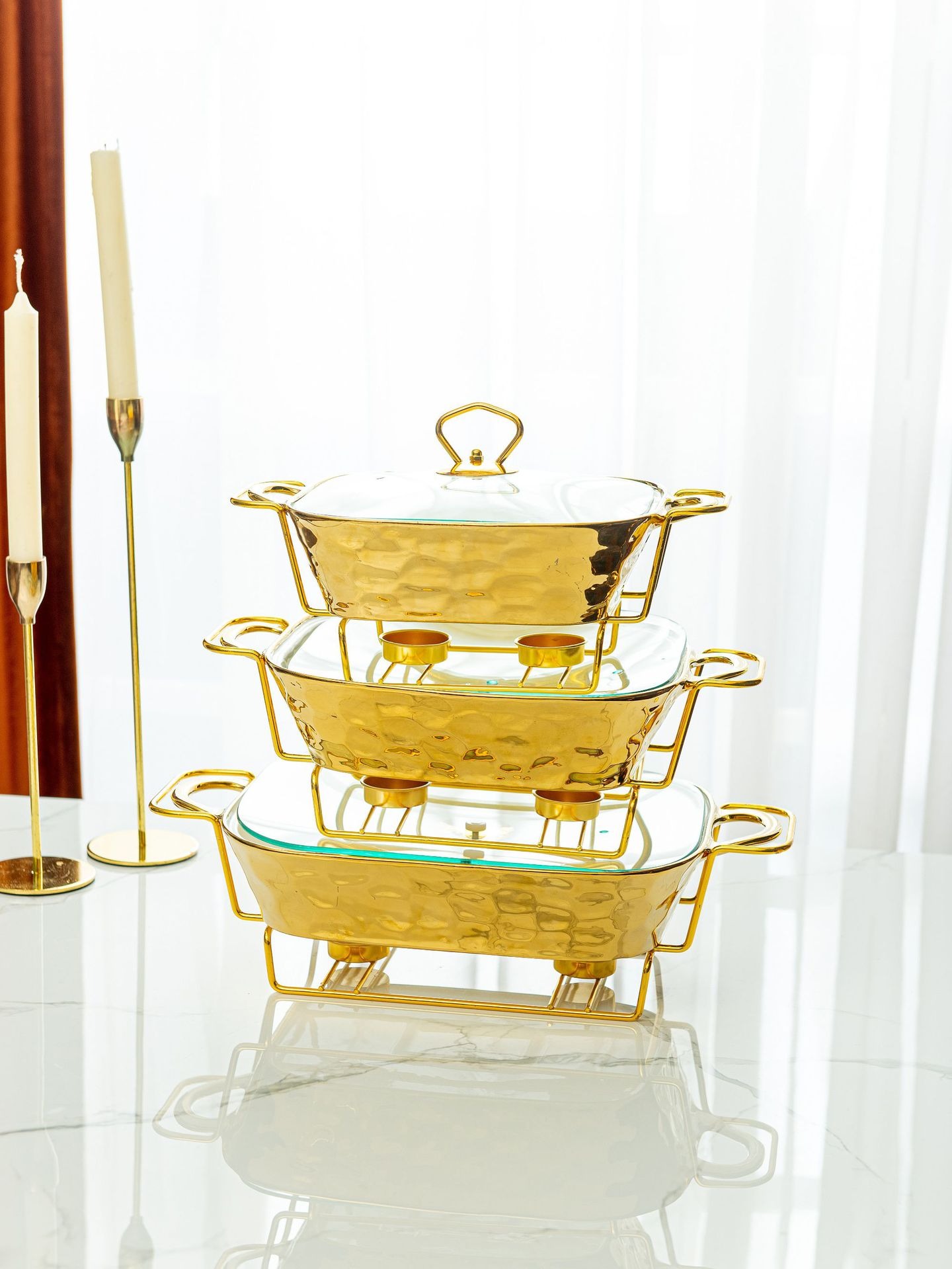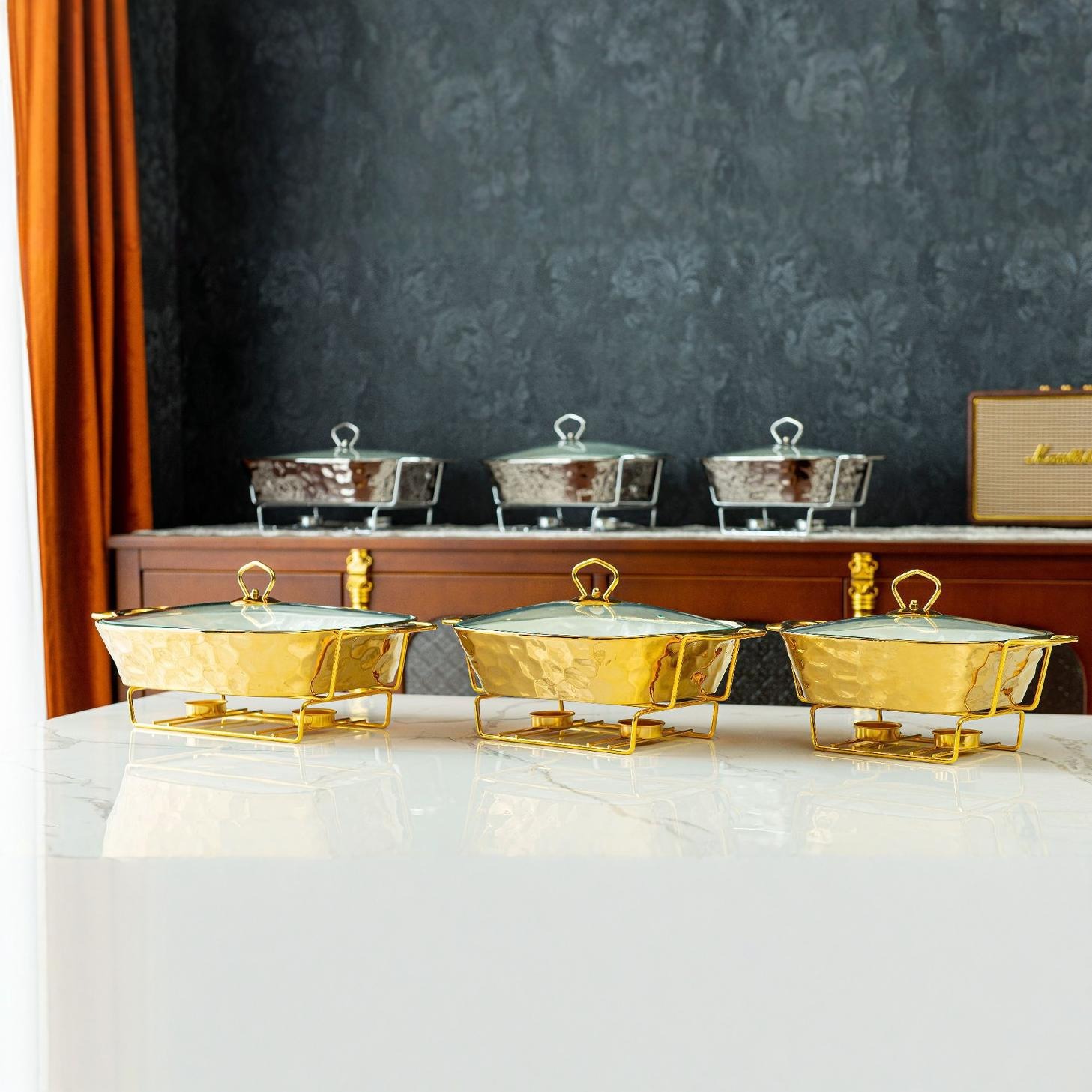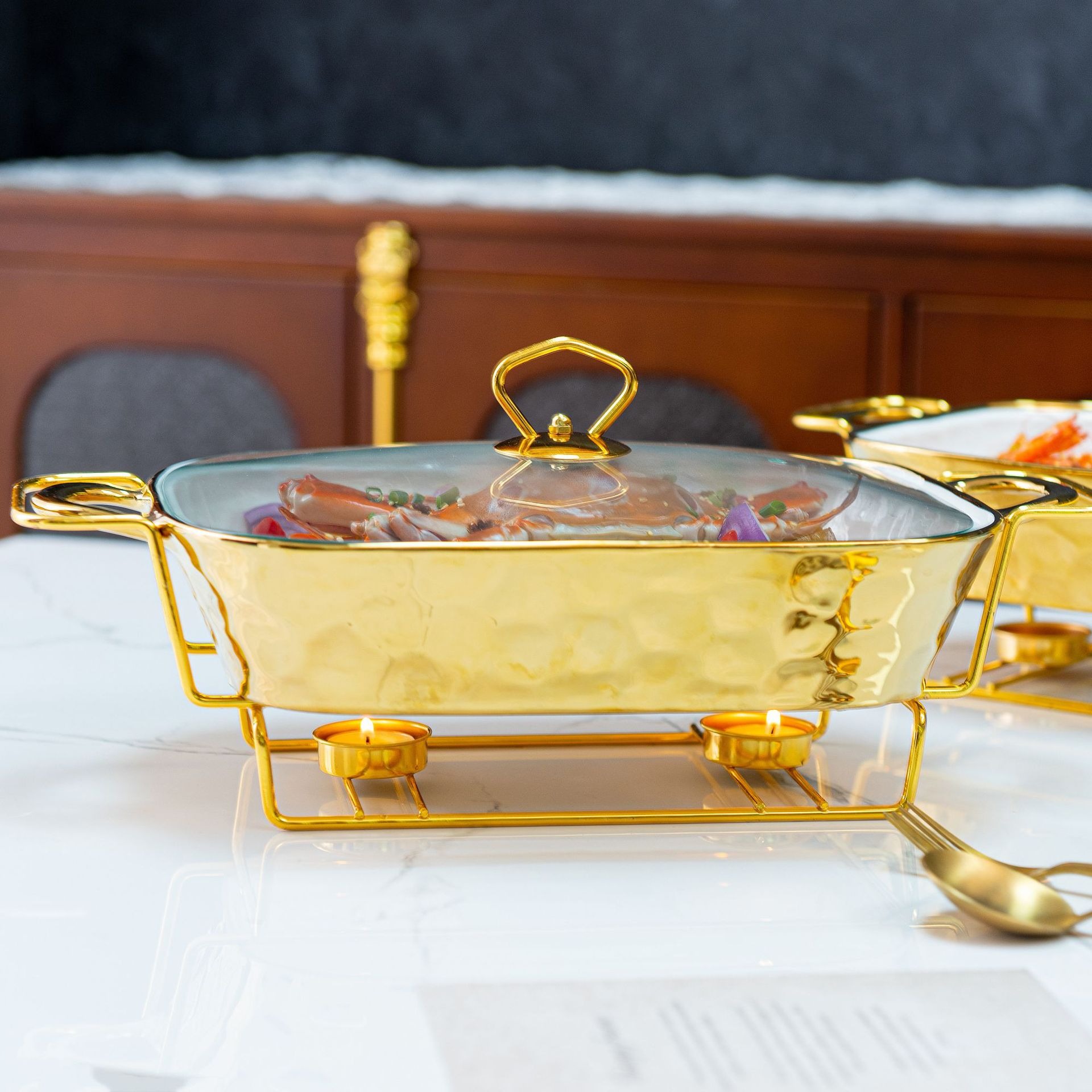 Gold Stone Texture Rectangular Ceramic Baking Dish with Glass Lid1