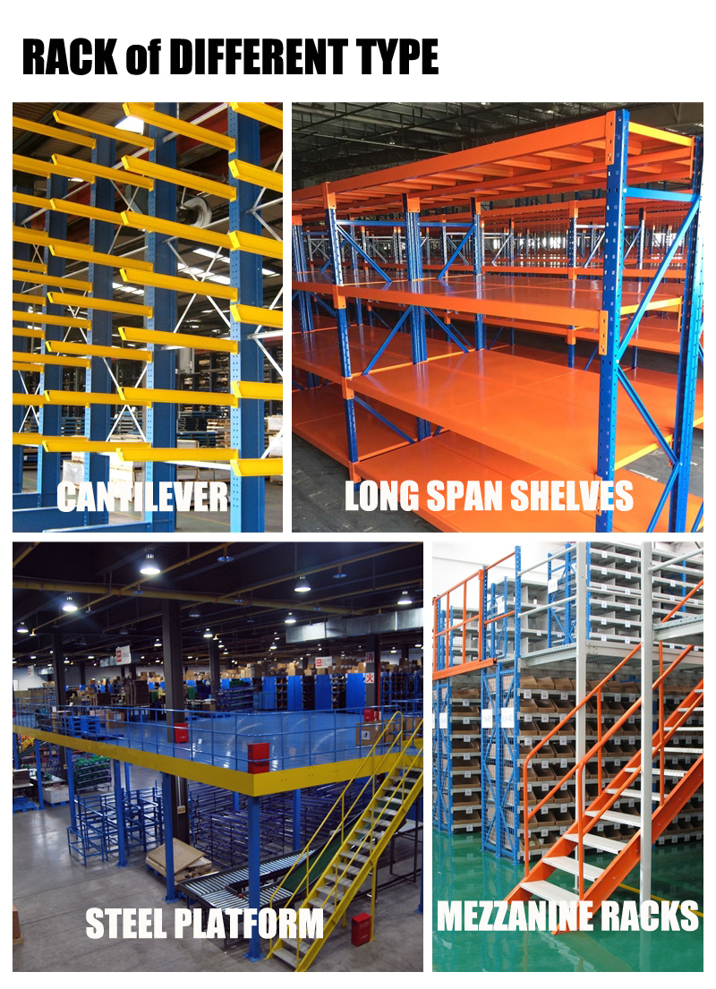 Everunion ,as a professional racking manufacturer , we can offer a wide range of racks, such as conventional pallet racks, Double deep racks, Drive-in racks, Narrow aisle racks, Push back racks, Radio shuttle racks, Gravity pallet racks, Cantilever racks ,Mezzanine, steel platform and long span shelving systems.