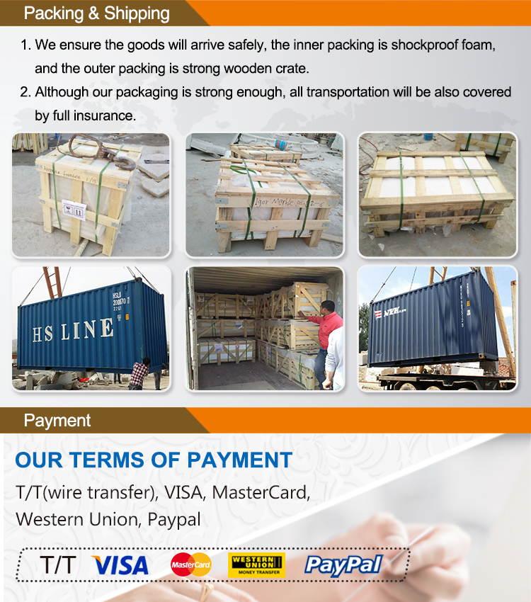 4) In the receipt of your deposit, we will arrange the production and will send you the pictures of?marble?men relief art from each angle for the ready goods after it was finished. The balance payment will be paid after your confirmation, and we will arrange the air freight or sea freight accordingly to the CBM of the goods.