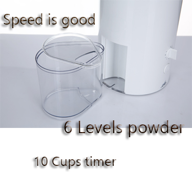 Timer | Chose the cups then the grinder will make powder for you exact. |