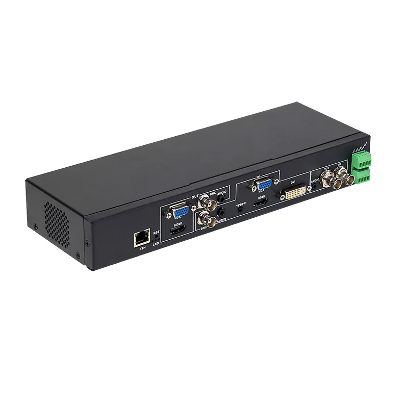 For 1* VGA/HD MI/CVBS/YPbPr/ DVI to IP output, 4*TS over IP streams output can be set with different resolution, bitrate, protocol. Connector: RJ45, 1000M | ||||||||