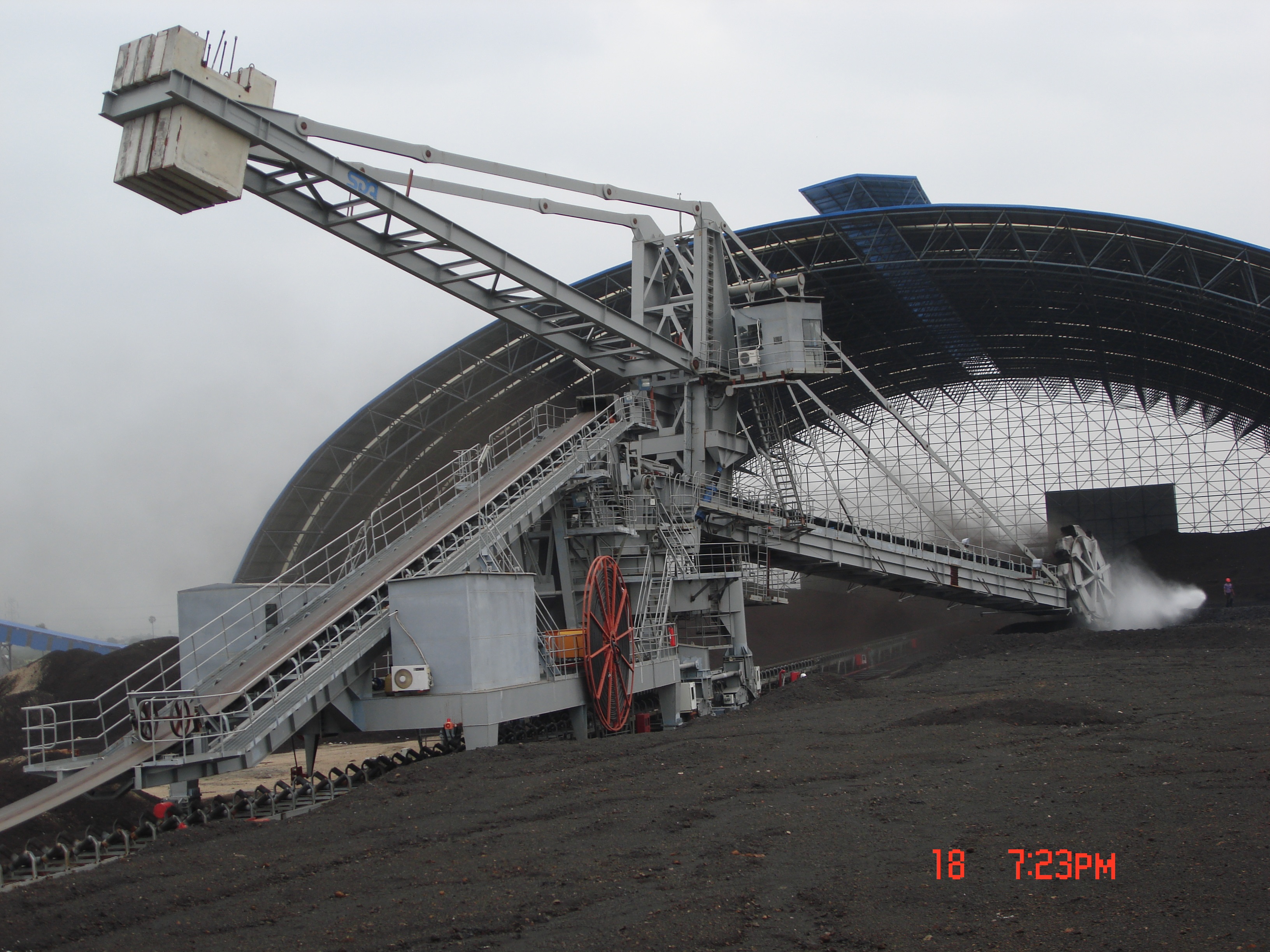 Stacker reclaimer, also known as bucket wheel stacker, stacker and reclaimer, is a new type of high efficiency continuous loading and unloading machine, mainly used for bulk cargo professional wharf, steel plant, large thermal power plant and mine to load and unload iron ore (sand), coal, sand, etc. Generally, it consists of four parts: luffing mechanism, walking mechanism, bucket wheel mechanism and rotary mechanism. Because of its high efficiency, it has been widely used at home and abroad. The ports of Shanghai, Ningbo, Guangzhou, Qinhuangdao, Qingdao, Rizhao and Nanjing have all owned this kind of machinery in China.
