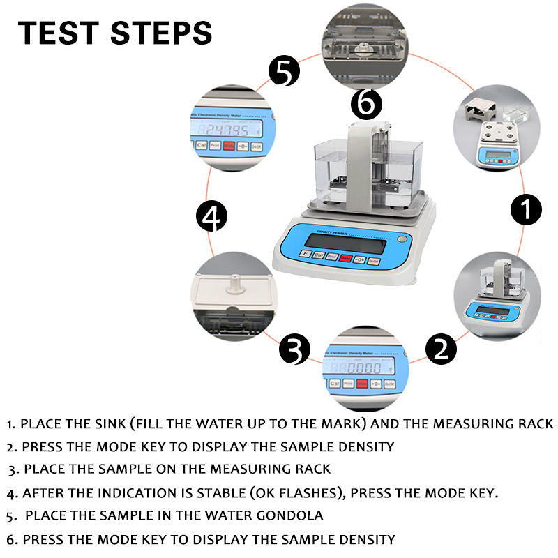 g·Specially integrated sink size for solid density measurement, 165*115*85mm;