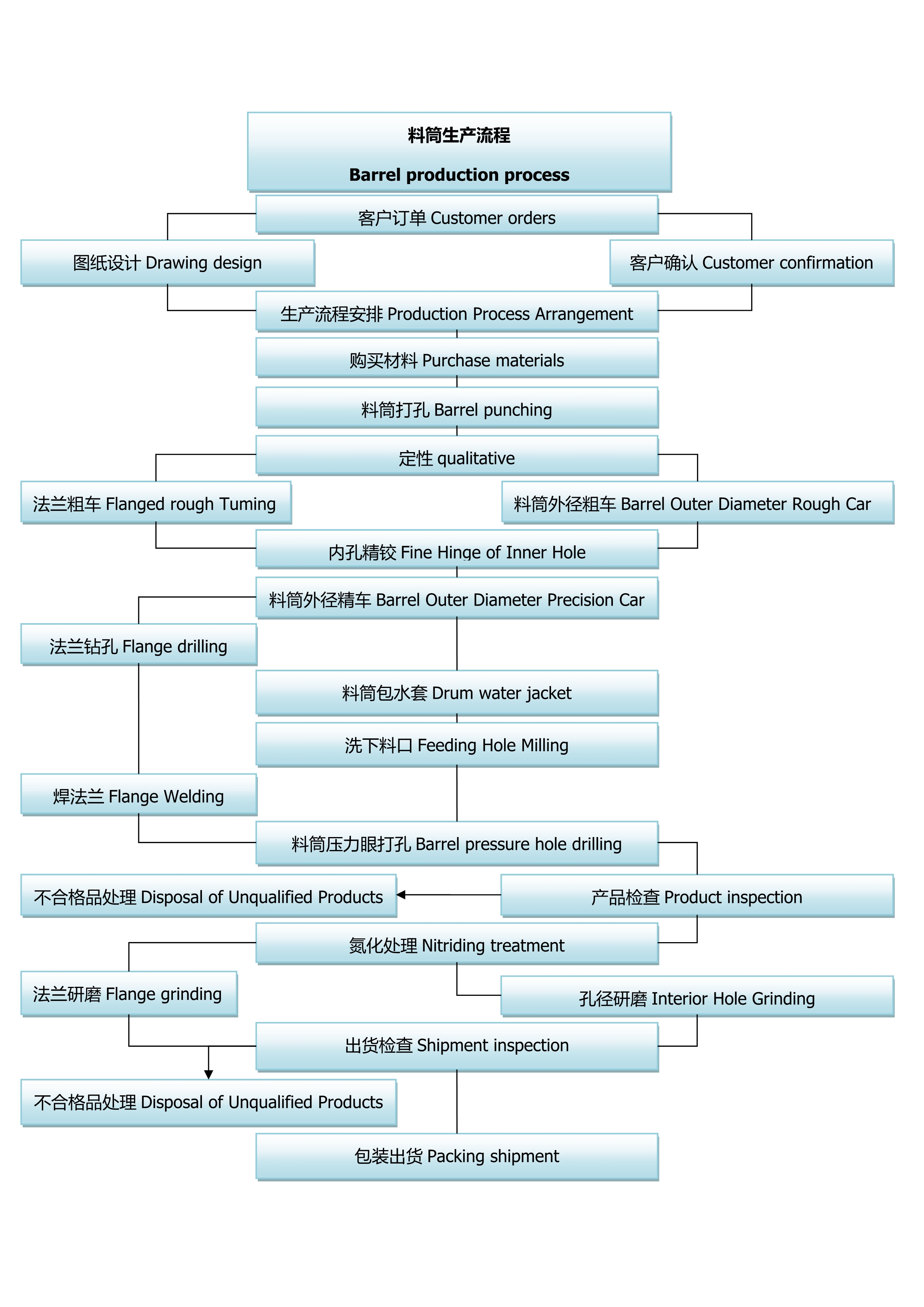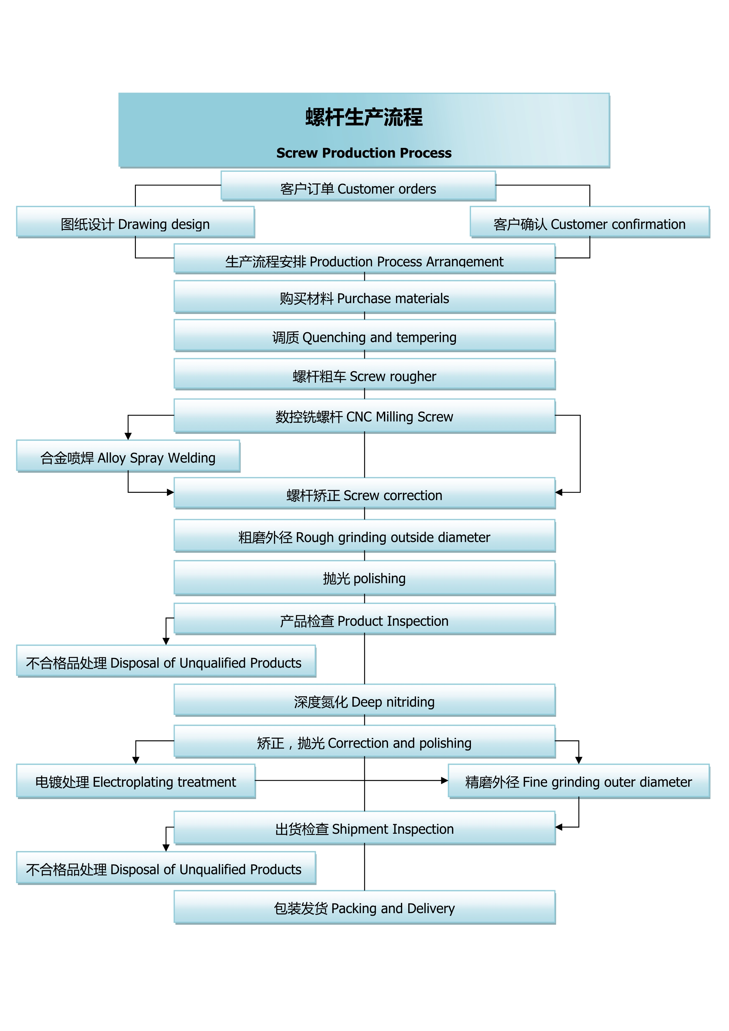 According to different raw materials and products the screw can be chosen: general type, pin type, barrier type, separation type, and gas-exhausting/vented type, etc.We can manufacture all types of screws and barrels according to clients’ requirement.