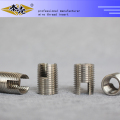 High precision hole series threaded inserts (also known as self threaded inserts or Ensats) are cylindrical metal bushings with internal and external threads and are specially designed to cut their own threads as they are being driven into a drilled hole. They provide permanent wear-resistant threads in a wide range of materials, from tough to tap, high strength steels to brittle plastics.