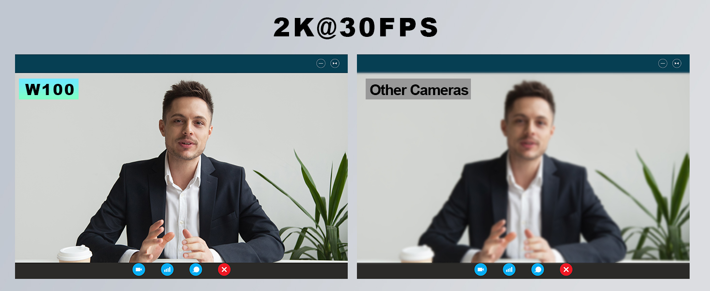 【Crystal Clear 2K Resolution】: Experience the difference in clarity with the W100 2K Webcam. Whether you're video conferencing, live streaming, or creating content, the 2K resolution at 30fps ensures every detail is captured with stunning clarity. Say goodbye to blurry images and hello to professional-quality video.