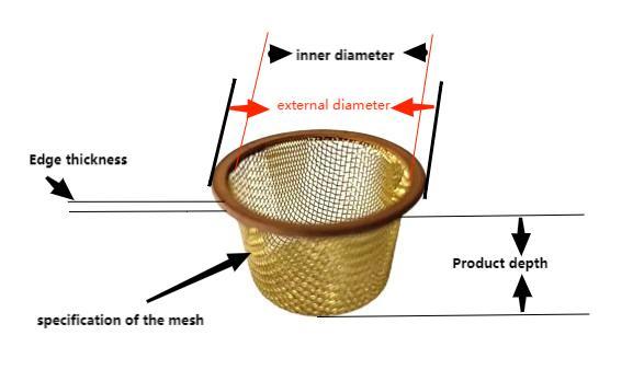 Specifications | Customized?Stainless Steel Cap Shaped/Bowl Shaped Brass Filter Wire Mesh Cap and Disc Filter Mesh | ||||||