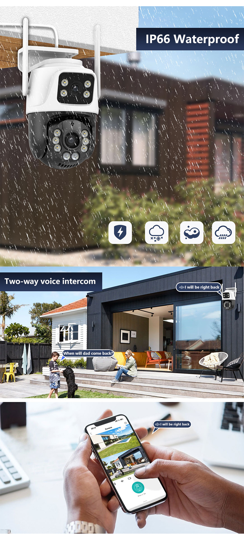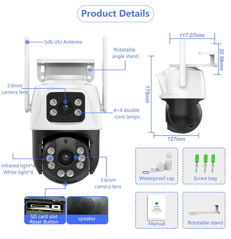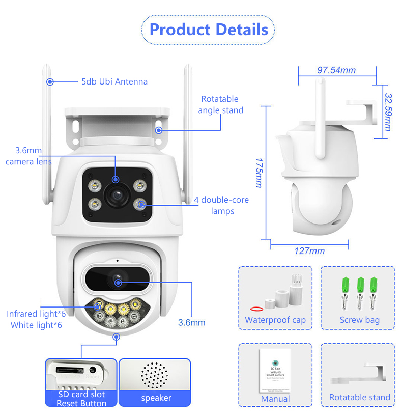 | Special Features | Human Motion Tracking, Face detection, NIGHT VISION, motion detection, Waterproof / Weatherproof, PAN-TILT, Two-way Audio |