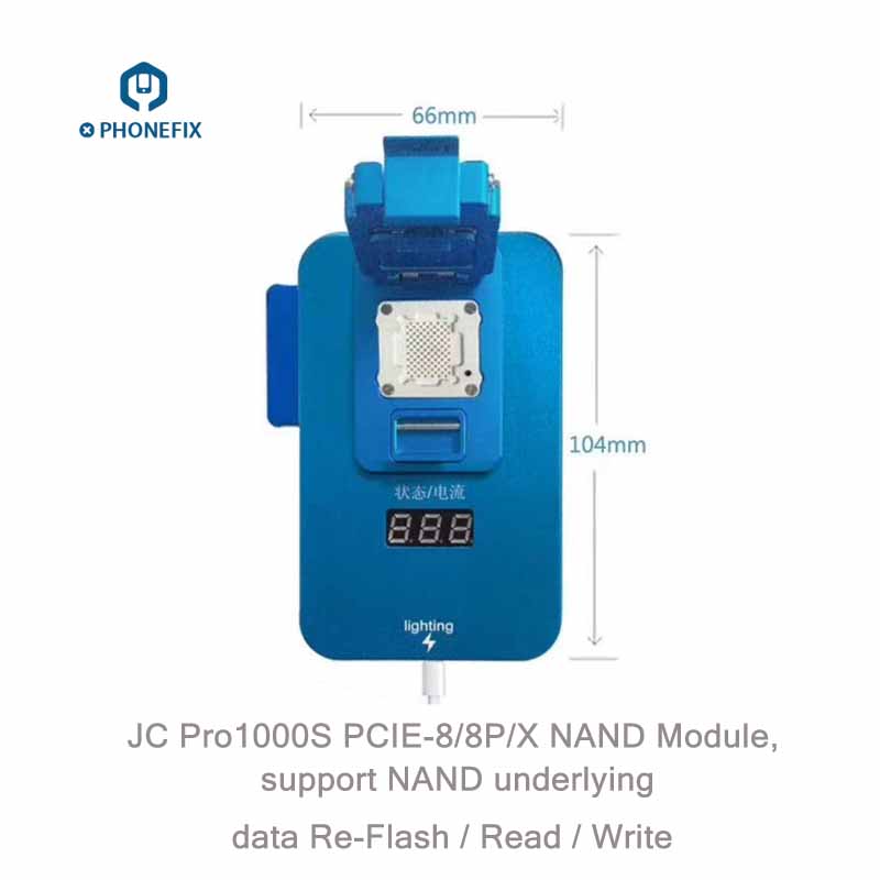 JC PCIE-8 NAND Test Fixture is the iPhone 8 8P X NAND underlying data Programmer, iPhone 8 X NAND Test fixture is designed to Change iPhone NAND underlying data, Serial Number SN / Model / Country / Color modification, Repair iphone 8 8P X NAND error, Expand iPhone 8 X NAND Memory Storage, This PCIE-8 module also can working on JC pro1000S machine.