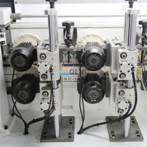 Edge banding machine can realize the multi-process strokes of plate pre-milling, gluing, double guide rails front and rear, rough repair, R1 fine trimming,R2 fine trimming, Corner trimming, scraping, flat scraping, double polishing, etc. Fast and stable, double finishing, more delicate trimming, double polishing, perfect effect.
