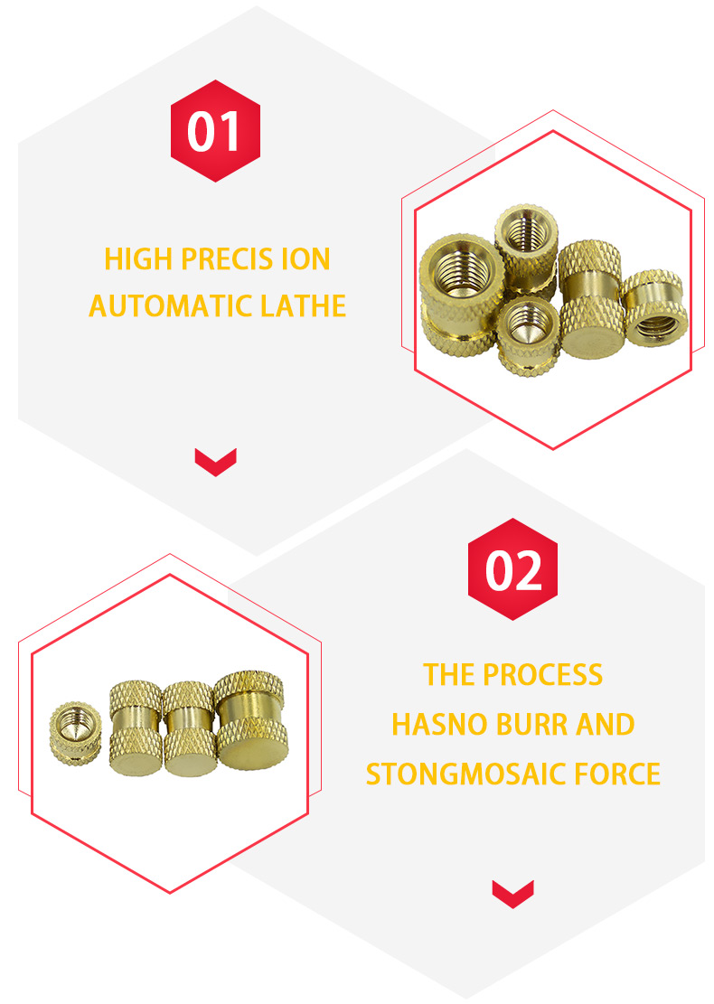 ★Brass insert nut Both sides of the chamfer can pass the stop gauge, and it is not easy to slip in the process of even rotation.