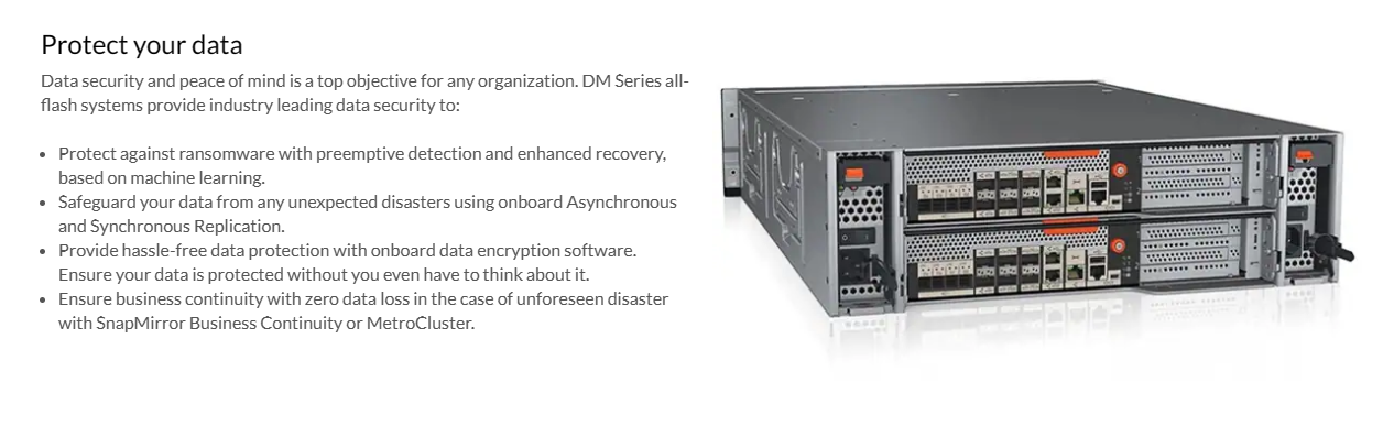 Power supply | Four 1600 W (100 - 240 V) (DM7100F 4U controller enclosure), or two 1600 W (100 - 240 V) (DM240N 2U24 SFF expansion enclosure), or two 913 W (100 - 240 V) (DM240S 2U24 SFF expansion enclosure) redundant hot-swap Platinum AC power supplies. |