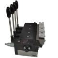 For 3 series constant displacement pump system, the safety pressure is set as 350 bar, each directional spool valve has the differential reducing valve. While L valve Core is on Neutral position, P、A、B、R port is closed ; While H valve Core is on Neutral position, P port is closed and A、B port is open with R port. A、B port of 1st directional spool valve flow is 40L/min, and A、B port press is not more than 300 bar, for the 2nd directional spool valve A port flow is 40L/min, B port flow is 25L/min, for the 3rd&4th directional spool valve, A&B port flow is 16L/min, for the 4th directional spool valve pressure should not more than 250bar. The end plate is Standard, and the T port is connected externally to oil tank.