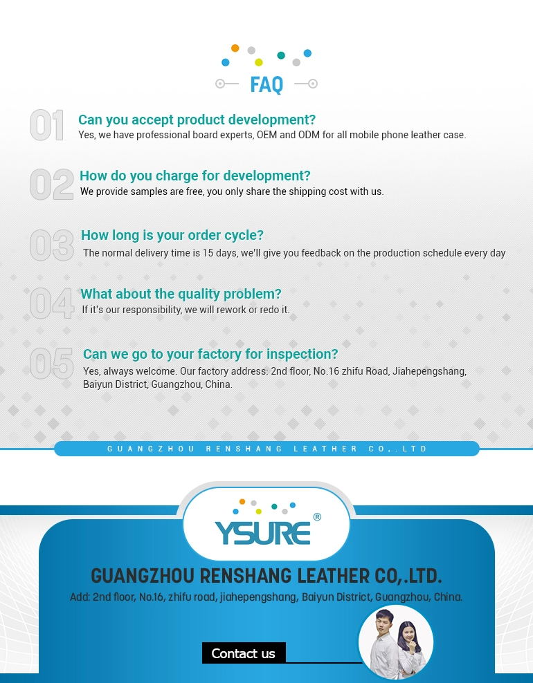 Our advantage | 1. Ten years experience in manufacturing and service will be more professional 2. Three production line can produce six models at the same time, more rapid delivery 3. Supporting deep processing, products diverse, OEM&ODM better service 4. Emboss LOGO, Print Picture, Pebble Or Saffiano Pattern Leather 5. We manufacture Real Leather Or PU Leather + Hard PC Phone case, Leather Card holder + Nylon lining and so on, We can manufacture anything about of leather goods |