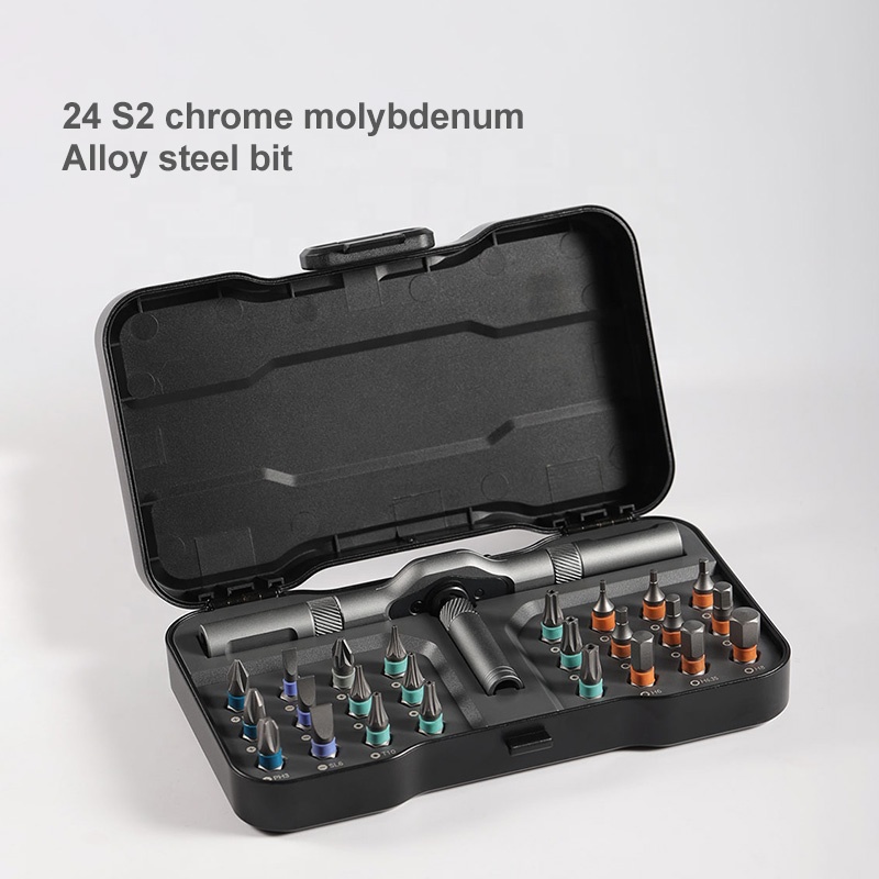 * 24Pcs Industrial grade S2 chrome molybdenum alloy steel screwdriver heads, with continuous heat treatment process. Assisted high precision CNC integrated molding, carburizing thermal refining, industrial grade service life, hard but not brittle, full of toughness.
