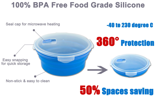 * Food grade material good for your health * Dishwasher & Mricoware & Freezer safe,easy to clean,Non-stick * Excellent storage space saving by 2/3,so easy * Many size for your chooes * Perfect for it indoor food storage , work , school , camping , hiking , travel and more |