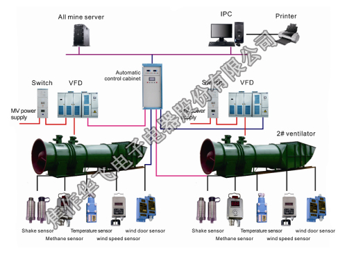 Huafei Company could provide complete Automatic Ventilator control system, include mine main ventilator system, Automatic Control For Ventilator, Smart Electric Drive, Pressure Control On Ventilator, Ventilator Control Cabinet, Single Quadrant Vfd Drive, Medium Voltage Vfd, Coal Mine Vfd and other Coal Mine Machine Control.