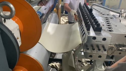 The raw materials are extruded into flooring products of the required shape through an extruder.