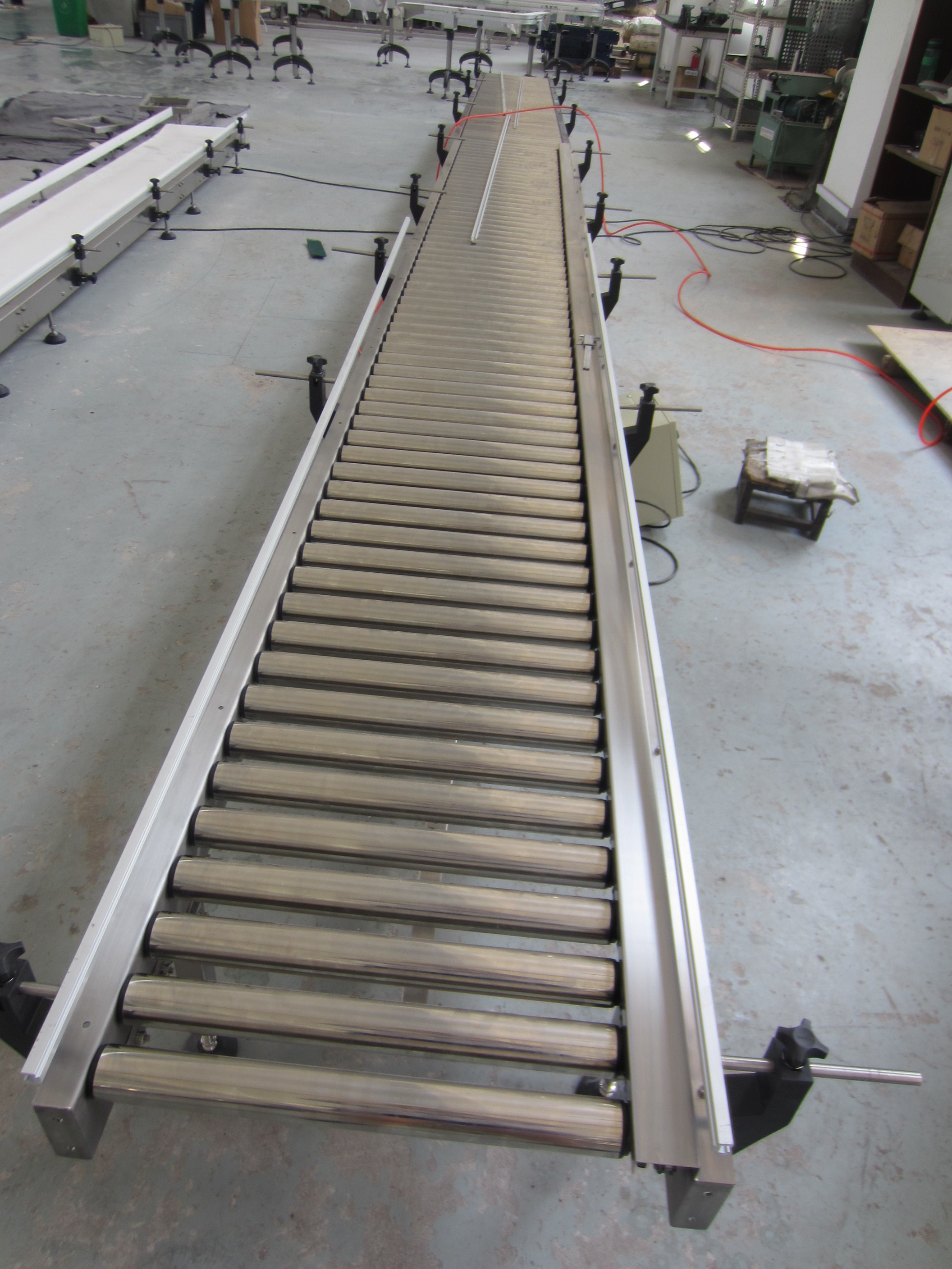 power roller conveyor will convey light,medium,and heavy loads that have firm flat bottoms such as cartons,totes,cases,skids,drums,our standard line of?power roller conveyor includes models with rollers from 38mm to 50mm diameter and various frame styles.Some models are suited for temporary set-up,others for permanent installation.