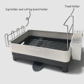 The Steel Dish Drainer has an innovative automatic drainage system. The drain tray can catch any water and drain it automatically. No need to pour the water out manually! The integrated drain tray is high capacity and has a drain spout that rotates 360° so you can put the rack next to the sink in the best position for your needs, and have it work.