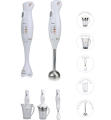 Electric Multifunction stick blender with 3-5 attachment , one speed or two speeds , with high quality , original and novel design, there has AC motor and DC motor version ,detachable plastic or stainless steel blender shaft,injection ABS material body , or any painting color is available, it has many accesorries as 500ml/1L measuring cup, blender shaft, whisk, different size 0.35L/0.5L/2L chopper with one blade or two blade, wall mount, slicer, ice crusher, speed selector,cable storage etc for various food , as cake, biscuit , cream, milk shake,juice,meat,vegetable slice,paste etc, It got GS/CB/CE/EMC/LVD/ROHS/Erp/LFGB/RAACH safety certificate with competitive price