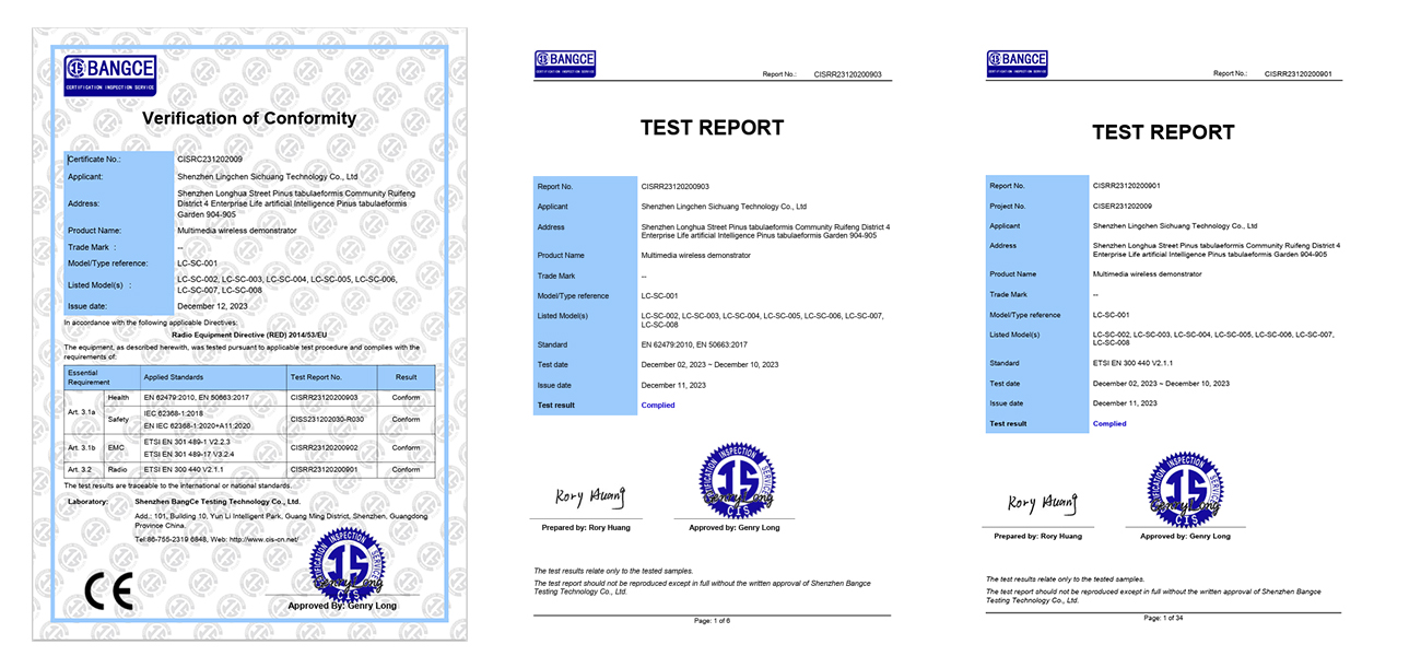 CE/RoHs/FCC/CCC etc.