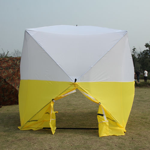These tents set up in seconds and are built for rugged daily use. Tent fabric is light weight, mildew resistant and ultra violet light resistant. One piece integral fabric and frame, without a center pole, provides a clear work area.