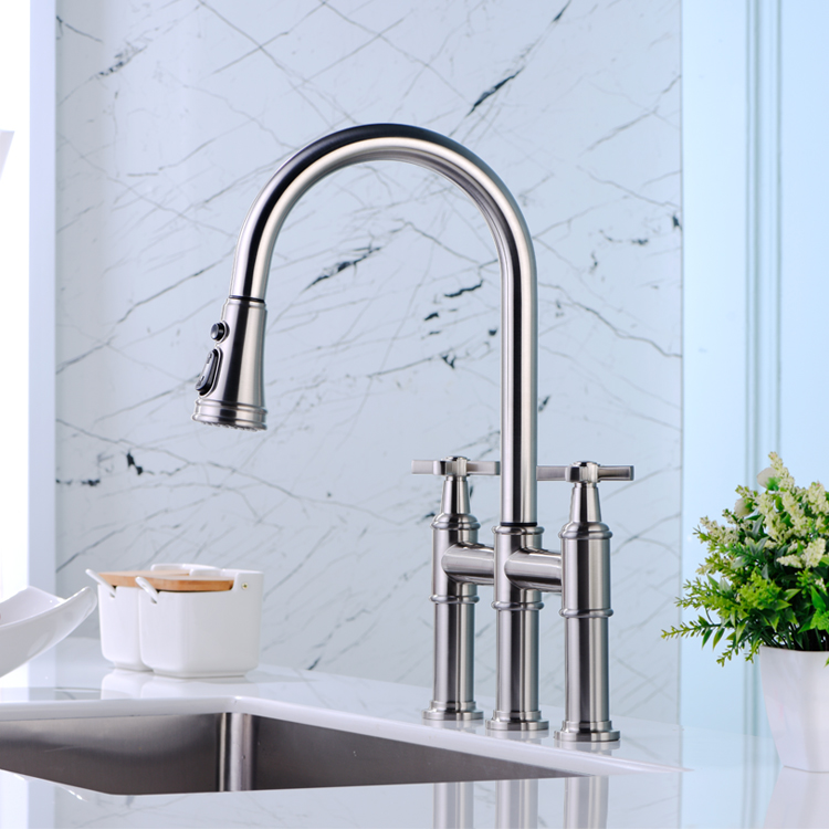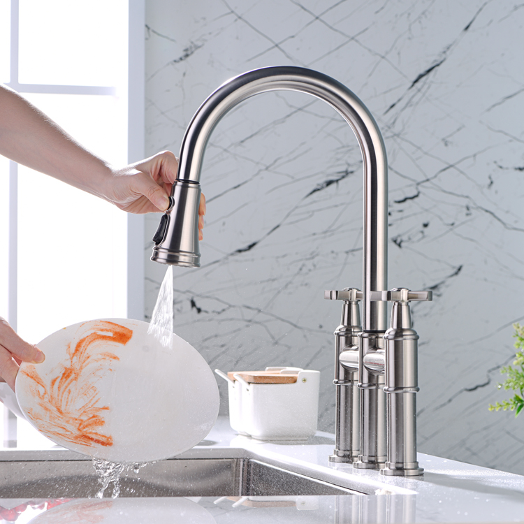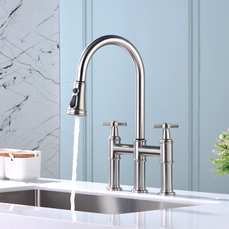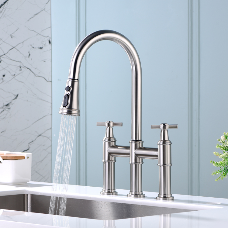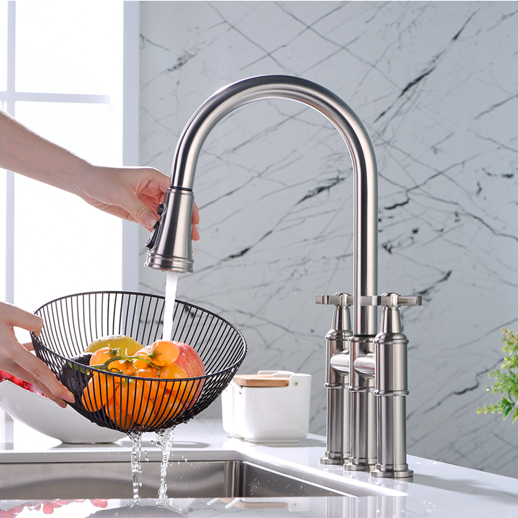The Multifunctional Pull Down Kitchen Tap is a versatile and efficient addition to any kitchen. With its single handle design, it is easy to adjust water temperature and flow rate to meet your needs. This type of faucet has become a hot sale item due to its sleek and modern appearance. It is also made with good quality materials, ensuring that it will last for years to come. The pull-down sprayer allows for easy cleaning of all kitchen surfaces, making it a convenient tool for home cooks and chefs alike. If you are in the market for a durable and efficient kitchen faucet, the Multifunctional Pull Down Kitchen Tap with single handle design is an excellent choice.