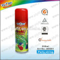 ? Christmas wedding?party silly string spray ? Art No. D0401 ? Application: PLYFIT Party String product can spray out a lot of colorful strings and creates joyful atmospheres. It sprays continuously and does no harm to skin. ?? Product Features: 1. Spray continuously 2. No harm to skin, easy to clean 3. EN71 certificate, eco-friendly 4. Glossy bright color ? Product Advantages: 1. It can spray 4-5 meters 2. Spray continuously without fragments 3. Evenwell-proportioned thickness 4. High extrusion rate 98% 5. No pollution, not color or adhesive other materials 6. Flammable, nonflammable, eco-friendly 7. Glossy color ? Available color: fluorescent color Anti-flammable or semi-flammable ? Packing Details ? ? ?