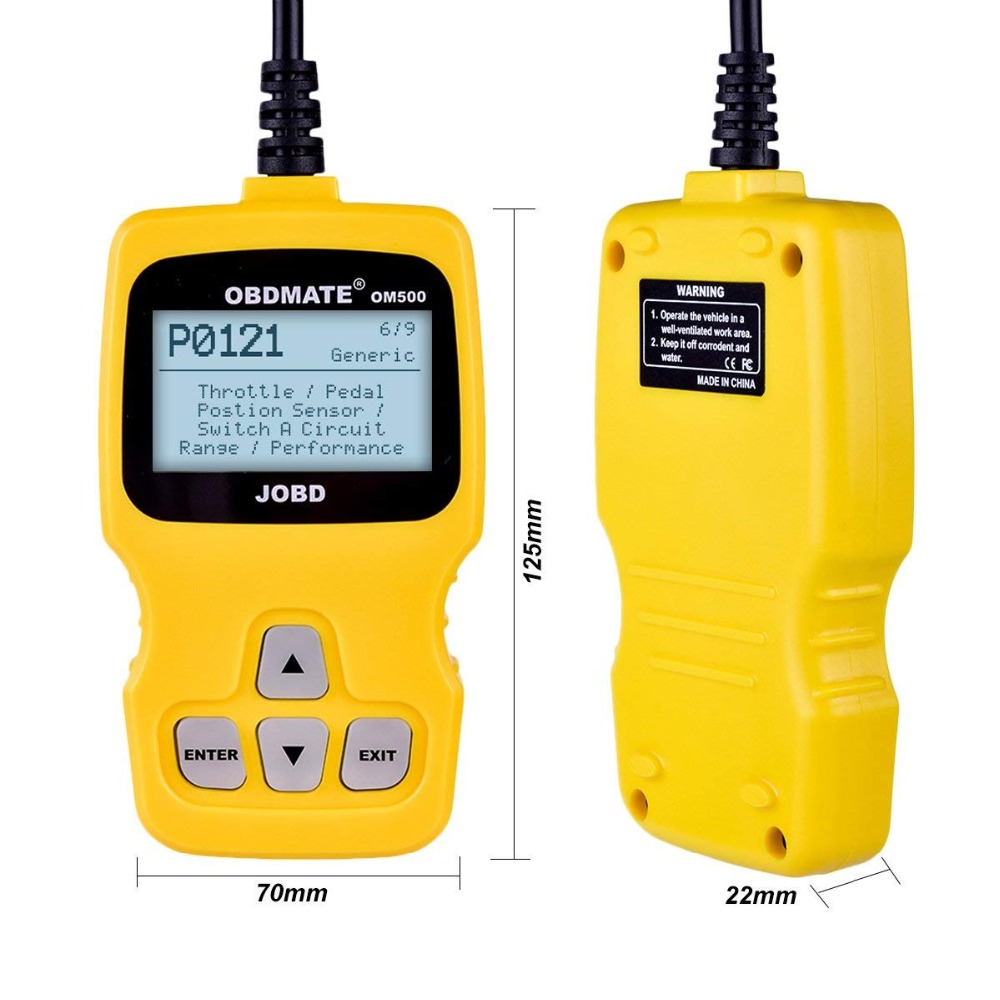 The OBDMATE OM500 Scan Tool is designed to work on all JOBD/OBDII/EOBD compliant vehicles. (including the CAN, J1850 PWM, J1850 VPW, ISO9141 and KWP2000 protocols) |