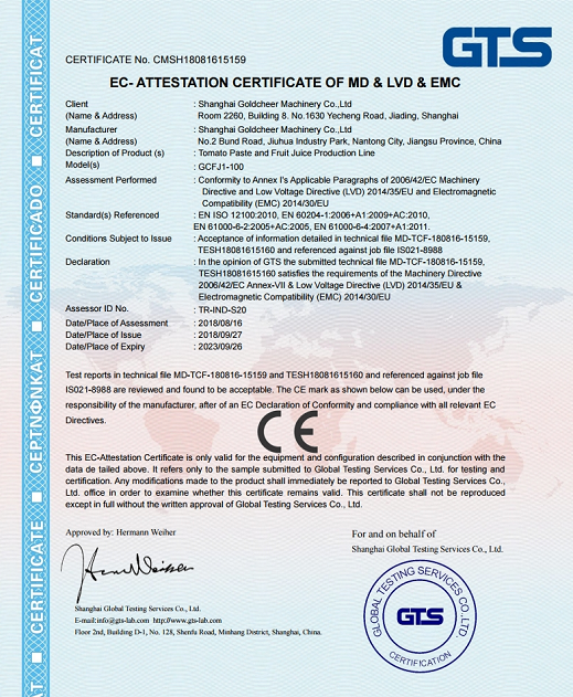 Shanghai Goldcheer Machinery Co., Ltd is a high-tech manufacturer of performance food processing machinery, Our company is committed to the design and development of production lines for tomato paste, fruit and vegetable juice, tea drink, milk powder,? yoghurt, CIP system, Sterilizing machine, cooling tank, beer beery equipment, etc.