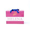 Pink colour + colorful printing , matt lamination or glossy lamination you can choice , the thickness from 1mm -3mm according with your demand , also the handle box is better for dress , clothes and shoes , you can add your logo in different effect , like as Gold/Silver Foil Stamping , or embossed , UV , the size is according with your product to make , colour you can adjust to be you like , if you are interested ,welcome to contact me ?