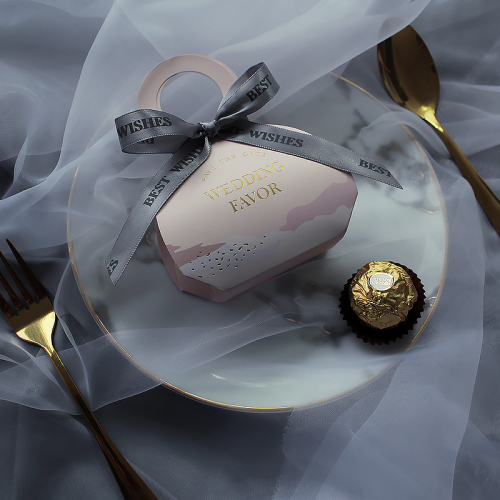 Pink wedding favors candy packaging box with handle