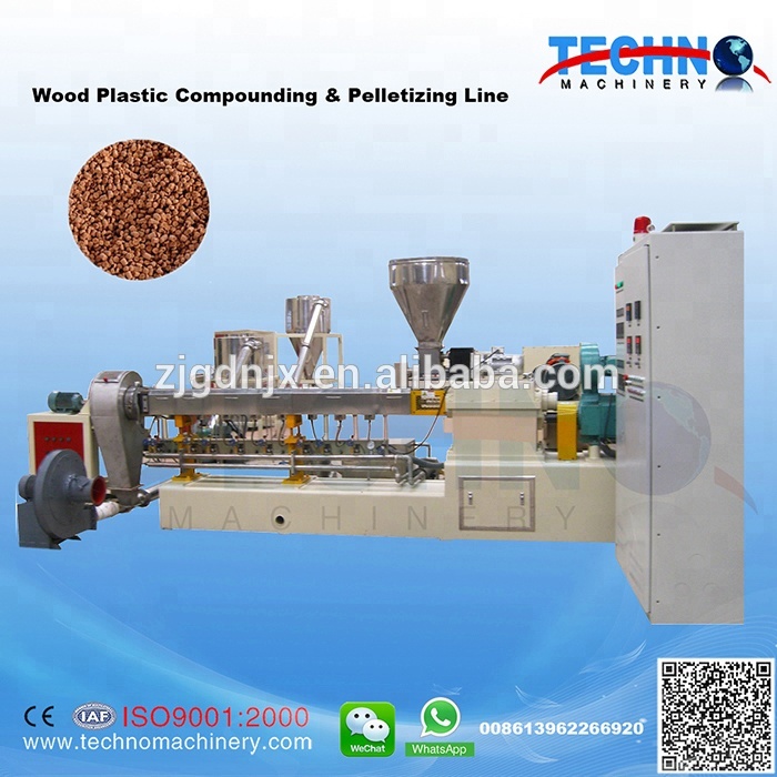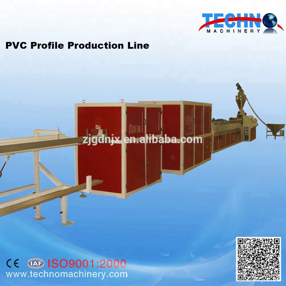 Raw material+Wood powder+Additive -?Mixing? -?Conical twin screw extruder -?Profile extrusion mould -?Cooling molding die -?Vacuum calibration support -?Belt haul off -?Cutter -?Rack -?Finished product inspecting and packing