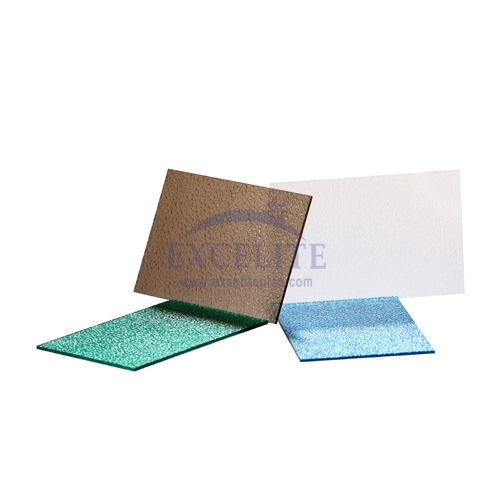 Embossed PC solid sheet is treating with texture or pattern is embossed on its surfaces. By the texture diffuses the natural light which streams in and ensures uniform dispersion of light over a large scale area, it can preventing glare. It also has ability to perform in wide range of temperature up to 100 degree Celsius makes the embossed sheets excellent for light fixtures that hear up after long usage. And more is it mainly used in the partition with beautiful decoration effects.