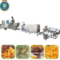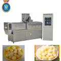 Corn puff snack food machine adopt corn, rice, wheat, oat, barley etc as ingredients to make puffed snack. Through frication of screw and barrel, the grains are cooked in the extruder. Forming is at the die face cutter. The product shape is determined by a combination of the die aperture, including ball, tube, stick, ring, fruit loop, star, wheel and flower etc.