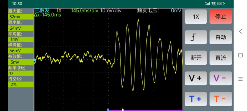 real-time. This app typically provides adjustable timebase (0.25μs—50s) and vertical sensitivity(5mV/Div—5V/Div)