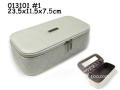 1)outside:PU leahter with sew thread pattern+zipper+metal plate with client \'s logo 2)inside:one color satin+satin inside of lid +pouch |