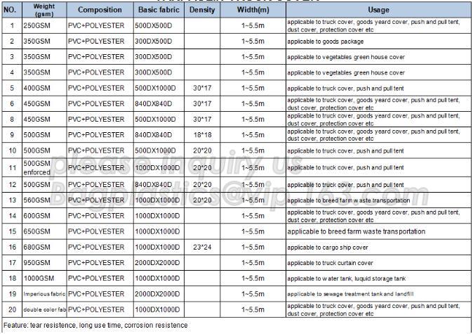 Except 610gsm PVC tarpaulin, you can have many choice 250gsm-2000gsm.